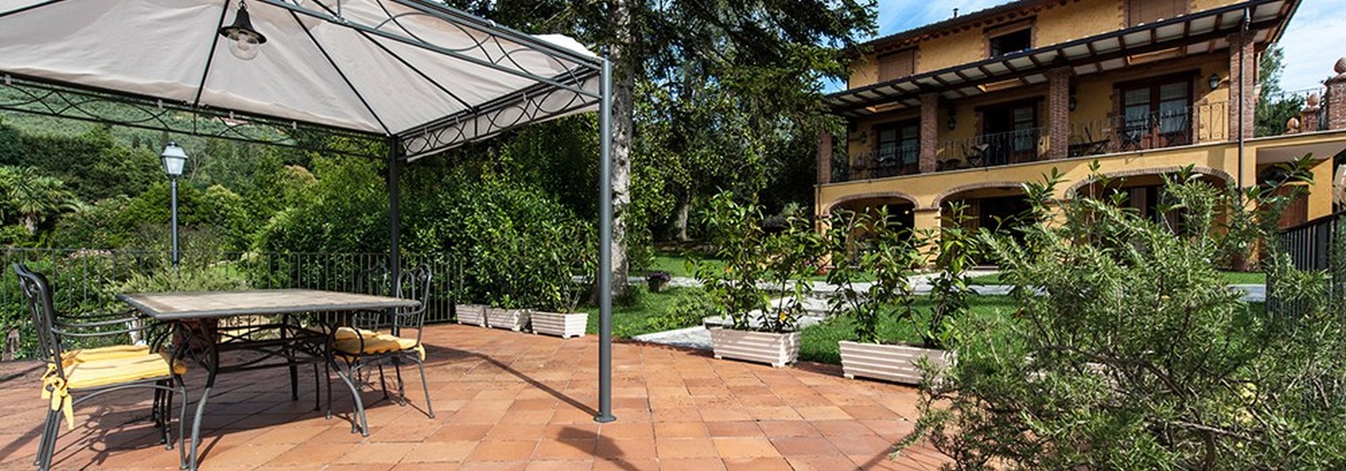 Villa La Sequoia is a brand new building, inaugurated on 1 May 2012 and immersed in the green and peaceful hills of Camaiore. The rooms and the lounge offer guests a rustic but refined atmosphere, in perfect Tuscan style. Our large garden and swimming pool are the ideal place to rest and relax. In full respect of the nature that surrounds it, Villa La Sequoia has chosen to use energy produced from renewable sources ensuring maximum comfort with minimal environmental impact. The property is located in a very favorable position for those who, in addition to relaxation, wanted to visit the wonderful Tuscan cities. We are in fact about twenty minutes from Lucca, Pisa and Livorno and about an hour from Florence. For lovers of the sea and entertainment, just a few kilometers away, the Versilia, with its beautiful beaches for families and the famous nightlife..